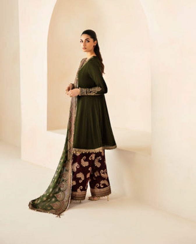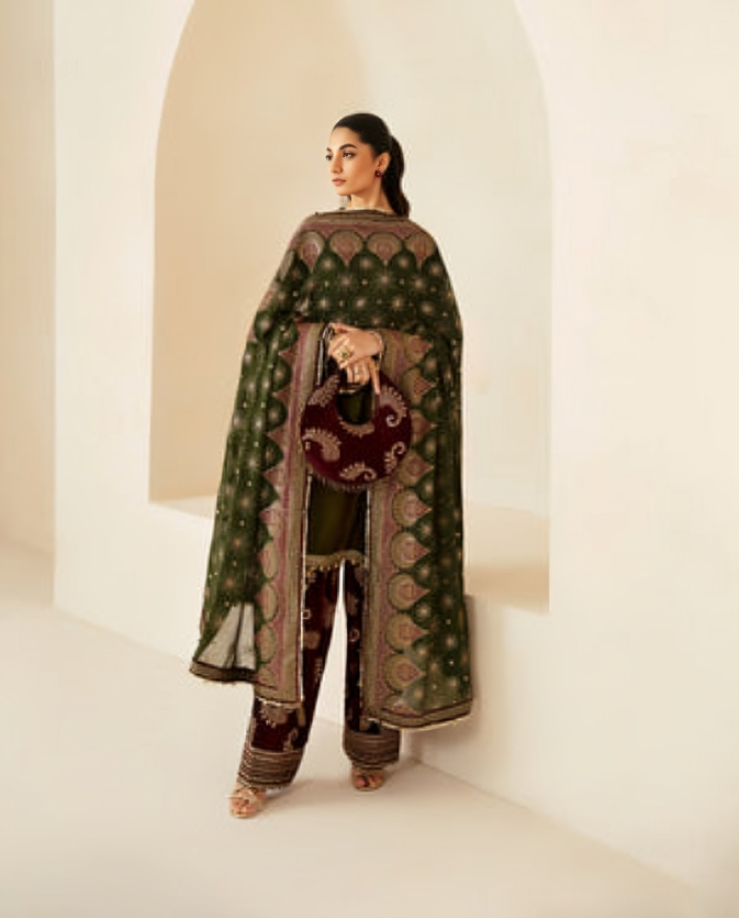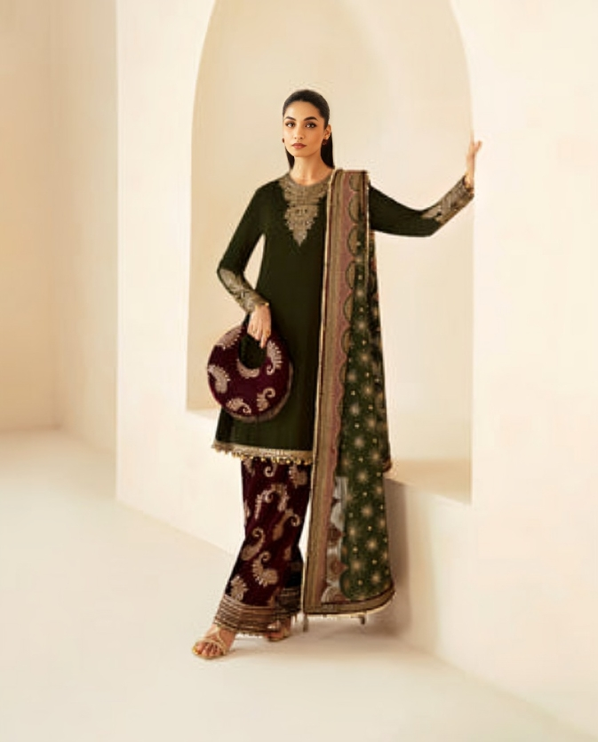 - Unstitched Embroidered Velvet Dress Design