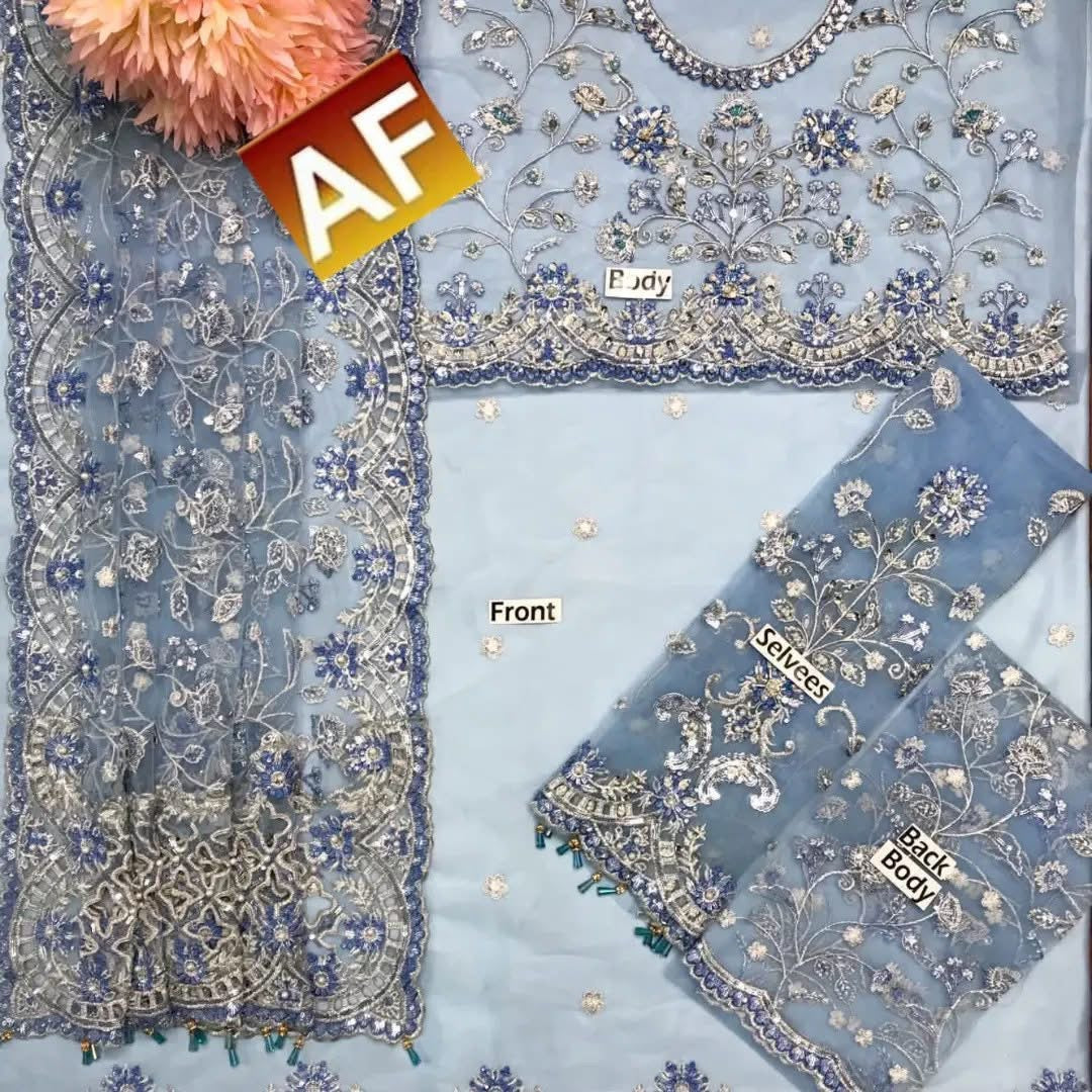 Fully Heavy Embroidered Net Front or Back With Cut Work Border