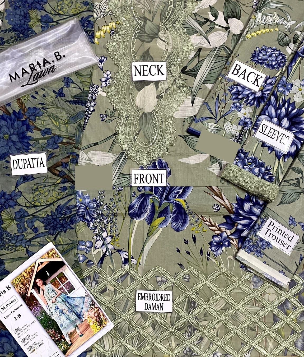 MARIA B M PRINT LAWN COLLECTION 2025  NEW CATLOG *printed lawn front with  heavy embroidered spengle work...